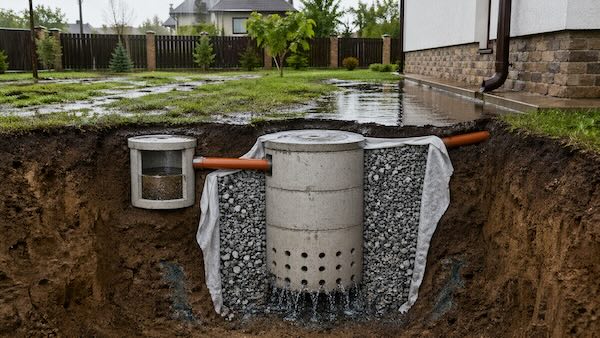 Після сильної зливи на багатьох ділянках повторюється одна й та сама історія. З даху ллє під фундамент, біля вимощення стоять калюжі, внизу двору мокро кілька днів, а робити повноцінну ливнівку через пів ділянки не хочеться ні по грошах, ні по обсягу робіт. Саме в такій ситуації власники будинків починають шукати точкове рішення, яке реально працює, а не просто ховає проблему під землю.